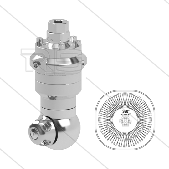 A50R-360° tankreiniger – 30 tot 140 Bar - 40 tot 50 l/min - 5,0mm injectors - exclusief nozzles - nozzle type: 4 x 1/8” Npt - inlaat 1/2" bi – 10 t/m 16 tpm