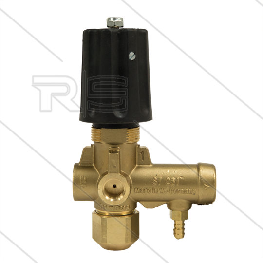 ST261 - drukregelautomaat - 250 Bar - 30 l/min - max 80°C - In: 3/8" bi - Uit: 3/8" bi - Bypass: 1/4" bi - met Chemicaliëninjector (2,1mm)