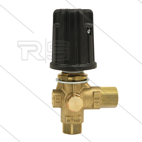 VB9 - drukregelautomaat - met knop en 1/4" bi manometeraansluiting - 220 Bar - 30 l/min - 60°C - In: 3/8" bi - Uit: 3/8" bi - Bypass: 3/8" bi - paneelmontage