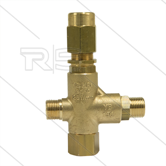 VB130 - drukregelautomaat - 10 tot 70 Bar - 25 l/min - 60°C - In: 3/8" bu - Uit: 3/8" bu - Bypass: 3/8" bi