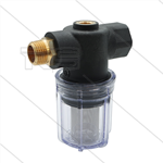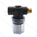 F5 LB - kunststof strainer - transparant filterglas - met 1/4" bypassaansluiting - 300 mµ - 10 Bar - 30 l/min - 1/2" bi x 1/2" bu