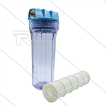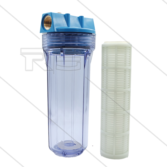 Patroonfilter 9" - 2x 3/4" bi - transparant glas - inclusief 60 mµ gaaspatroon - 27 l/min - H=306mm - max 8,6 Bar - max 40°C