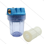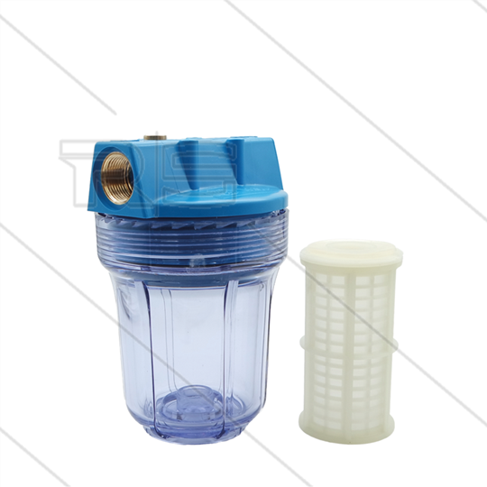 Patroonfilter 5" - 2x 3/4" bi - transparant glas - inclusief 60 mµ gaaspatroon - 13 l/min - H=176mm - max 8,6 Bar - max 40°C
