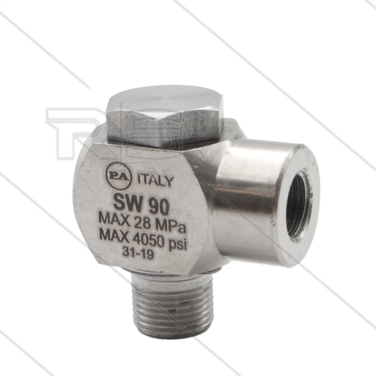 SW90 - Swivel - haaks - Messing / RVS - 250 Bar - 40 l/min - max 90°C - 30 tpm - 3/8" bu x 1/4" bi