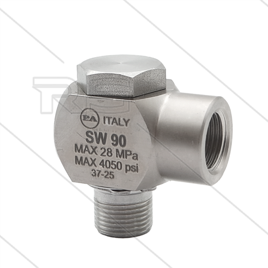 SW90 - Swivel - haaks - Messing / RVS - 250 Bar - 40 l/min - max 90°C - 30 tpm - 3/8" bu x 3/8" bi